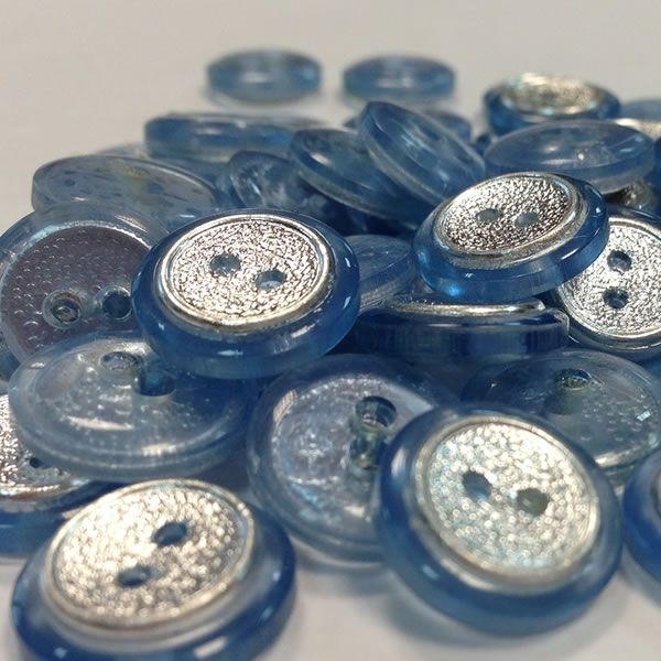 Ref001162 Botón Redondo en colores azul y celeste y plata y transparente