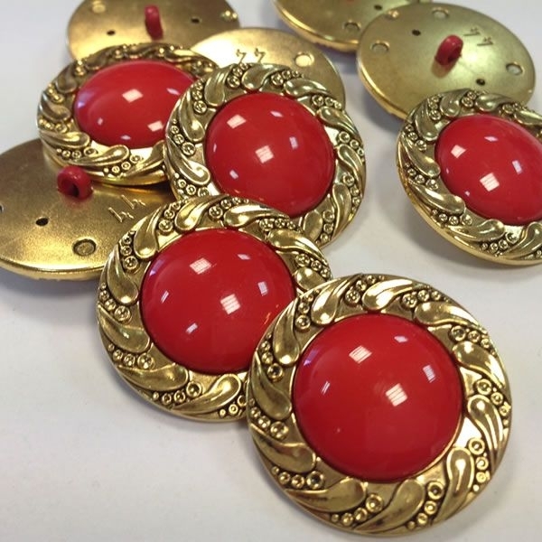 Ref000904 Botón Redondo en colores rojo y dorado